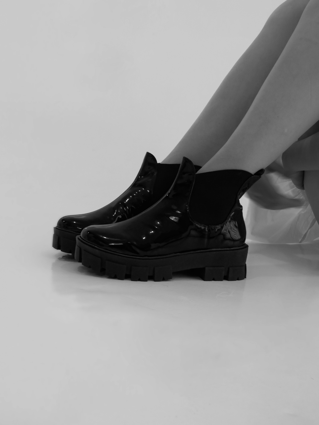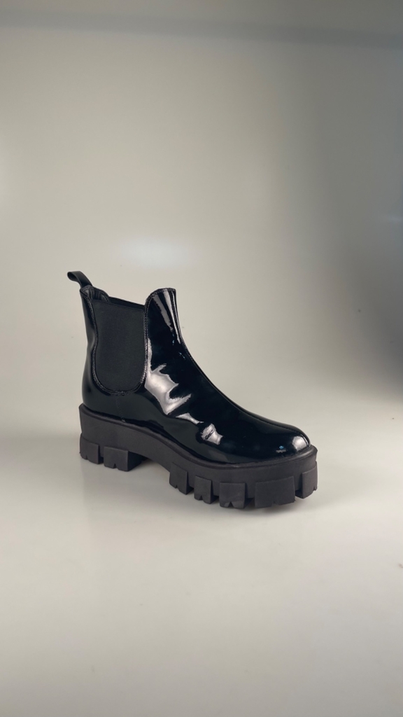 Bota cano baixo preta de verniz