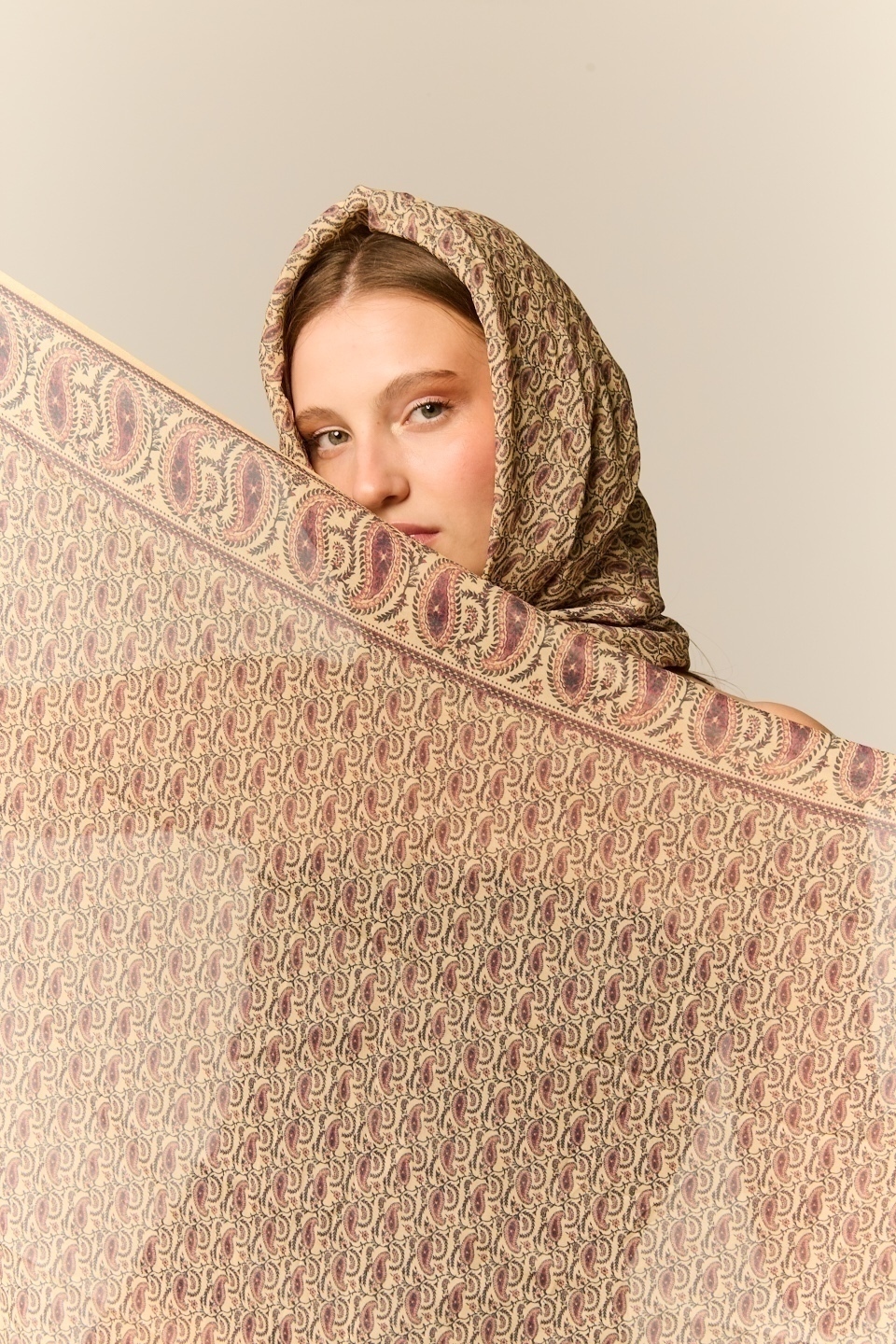 Lenço com estampa e detalhe com pingente nas pontas